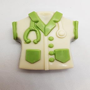 Ročno izdelana čokoladna figura iz bele čokolade Erilo (32% kakavovih delcev).